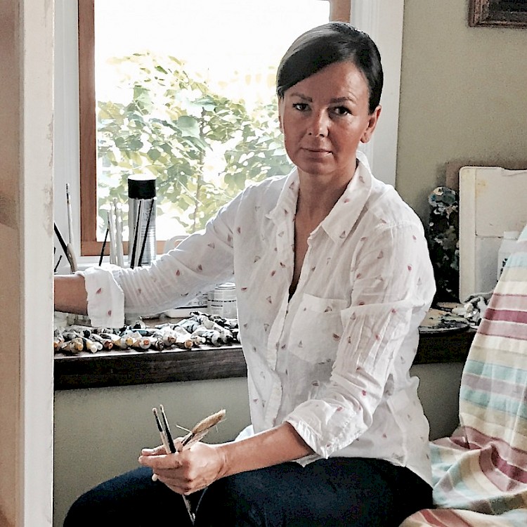 She has been painting and past 20 years and showing her art work in many individual and joined exhibitions in Poland, Italy an United States. She lives in Somers where she works from her studio in town. Oil painting and graphic are discipline she expresses herself the most. You can see passion for realism and sharp technic in her portraits, animal paintings as well as interiors or landscape.